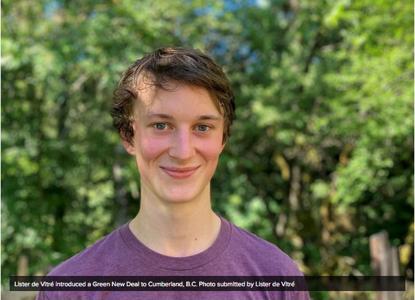 Idealistic teens finessed a Green New Deal for coastal community. National Observer, July 19, 2021. For a “power of one” story, a “think global – act local” tale, or even an episode of “never underestimate the integrity and willing involvement of youth”, look no further. After reading Naomi Klein’s book On Fire: The Burning Case for a Green New Deal and seeing a flyer sent by the Council of Canadians suggesting actions taken by local government might inspire senior levels of government to act, and that residents could encourage local councils to act, teenager Lister de Vitré signed up his friend Ben Mason and, together, they involved community groups in Cumberland to successfully petition local Council to develop its own Green New Deal.